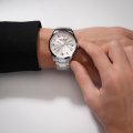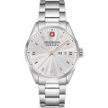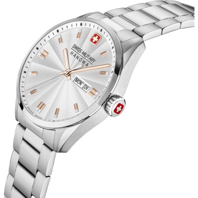 This Swiss Military Hanowa watch has a case made of Steel silver with a diameter of 43 mm and is fitted with a Steel silver strap. Inside the case lies a Ronda movement and the watch features a Sapphire crystal.