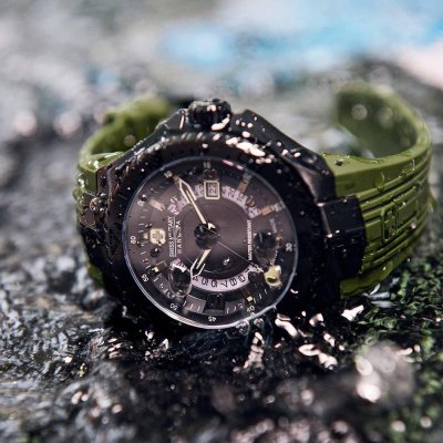 The watch is 5ATM. This means the watch is suitable for showering. The watch comes with Swiss Military 3+2.