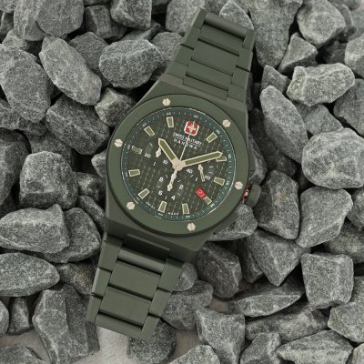 The watch is 10ATM. This means the watch is suitable for swimming. The watch comes with Swiss Military 3+2.