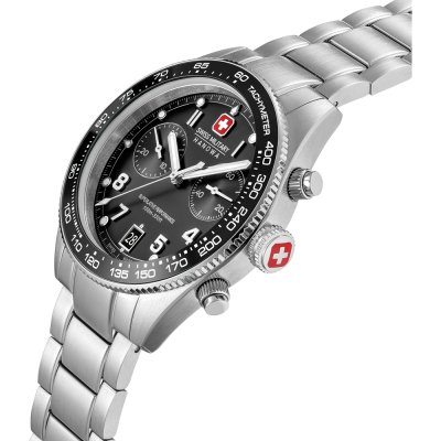 This Swiss Military Hanowa watch has a case made of Steel silver with a diameter of 43 mm and is fitted with a Steel silver strap. Inside the case lies a Ronda movement and the watch features a Sapphire crystal.