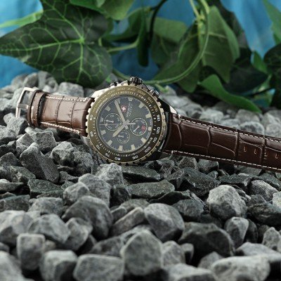 The watch is 10ATM. This means the watch is suitable for swimming. The watch comes with Swiss Military 3+2.