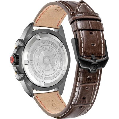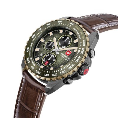 This Swiss Military Hanowa watch has a case made of Steel silver with a diameter of 45 mm and is fitted with a leather strap. Inside the case lies a Ronda movement and the watch features a Sapphire crystal.