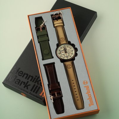 This Timberland watch has a case made of Aluminum with a diameter of 46 mm and is fitted with a leather strap. Inside the case lies a Seiko Instruments Inc. movement and the watch features a Mineral crystal.