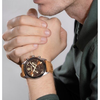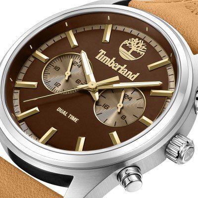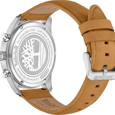 This Timberland watch has a case made of Steel silver with a diameter of 45 mm and is fitted with a leather strap. Inside the case lies a Seiko movement and the watch features a Mineral crystal.