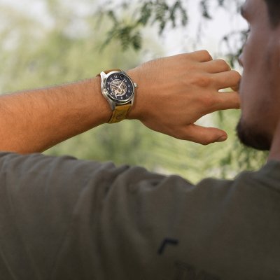This Timberland watch has a case made of Steel silver with a diameter of 43 mm and is fitted with a leather strap. Inside the case lies a Seagull movement and the watch features a Mineral crystal.