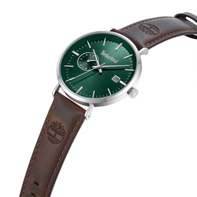 This Timberland watch has a case made of Steel silver with a diameter of 42 mm and is fitted with a leather strap. Inside the case lies a Miyota movement and the watch features a Mineral crystal.