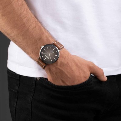 This Timberland watch has a case made of Steel silver with a diameter of 42 mm and is fitted with a leather strap. Inside the case lies a Seiko Instruments Inc. movement and the watch features a Mineral crystal.