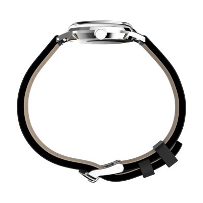 This Timex watch has a case made of Steel silver with a diameter of 38 mm and is fitted with a leather strap. Inside the case lies a Timex movement and the watch features a Acrylic crystal.