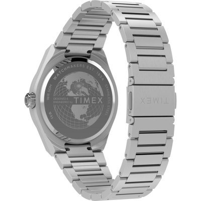 This Timex watch has a case made of Steel silver with a diameter of 39 mm and is fitted with a Steel silver strap. Inside the case lies a Timex movement and the watch features a Mineral crystal.