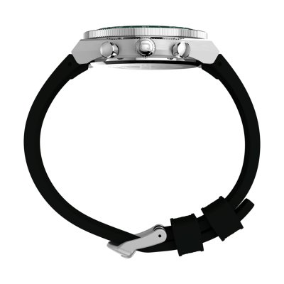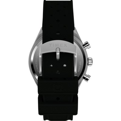 This Timex watch has a case made of Steel silver with a diameter of 40 mm and is fitted with a rubber strap. Inside the case lies a Timex movement and the watch features a Mineral crystal.