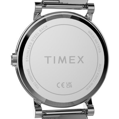This Timex watch has a case made of metal alloy with a diameter of 38 mm and is fitted with a Steel silver strap. Inside the case lies a Timex movement and the watch features a Mineral crystal.