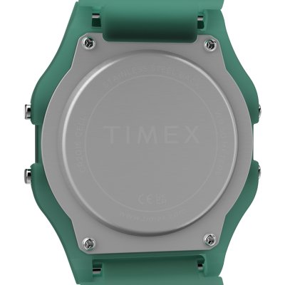 This Timex watch has a case made of Resin with a diameter of 34 mm and is fitted with a Resin strap. Inside the case lies a Timex movement and the watch features a Acrylic crystal.