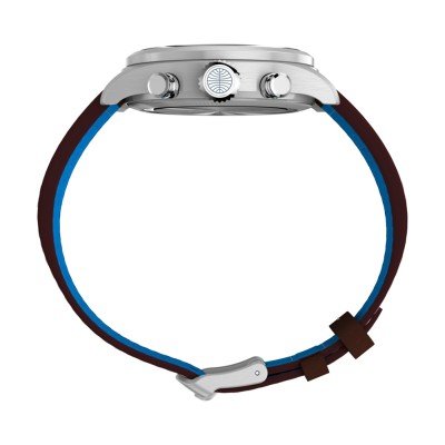 This Timex watch has a case made of Steel silver with a diameter of 41 mm and is fitted with a leather strap. Inside the case lies a Timex movement and the watch features a Mineral crystal.