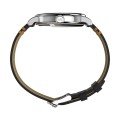 This Timex watch has a case made of metal alloy with a diameter of 40 mm and is fitted with a leather strap. Inside the case lies a Timex movement and the watch features a Mineral crystal.