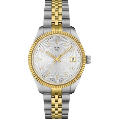 This Tissot watch has a case made of Steel silver with a diameter of 34 mm and is fitted with a Steel silver strap. Inside the case lies a ETA movement and the watch features a Single anti-reflective sapphire crystal.