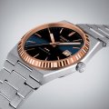 This special PRX Powermatic 80 watch is basically the same as the regular PRX watches, but supplemented with extra luxurious details such as a genuine 18 carat rose gold bezel and indexes. In combination with the deep blue sunray dial and the serrated edge of the bezel, these accents give the watch a luxurious retro look. The very accurate automatic Swiss movement with patented Nivachron spring has a power reserve of up to 80 hours. Yet the case of this PRX Powermatic 80 is only 10.9 mm thick.
