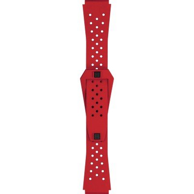 This Tissot watch strap is made of rubber and is attached to the watch by means of quick release pushpins. The band has a width of 24 mm and is closed by means of a watch strap loops. The strap has no straight mount which means that this strap is only suitable for the watches listed below.