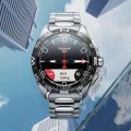 The hybrid T-Touch Connect Solar watch is powered by an in house developed privacy-proof operating system. The watch, applications and connected smartphones cannot send data to third parties and store all data on secure servers in Switzerland. You have to charge most connected watches quite often. That is not necessary with this watch. All electronic parts are energy efficient and the watch contains the latest generation of solar cells. Offline, the battery life is therefore virtually unlimited. When the watch is online, it can work for up to six months. Offline, the watch has the same functions as the 'regular' T-Touch: perpetual calendar, countdown timer, various timers and alarms, weather and altimeter functions. Even if you are not connected to your smartphone, you can still use the watch. In addition, by connecting the watch to your smartphone via Bluetooth, you get access to interactive functions such as activity tracking, calls, etc. The watch is compatible with iOS, Android and (soon) Harmony. The navigation system, consisting of push buttons, electronic crown and touchscreen made of scratch-resistant sapphire crystal, is designed to be used during the practice of any land sport such as hiking or mountain biking. In addition, the watch is water resistant to 100 metersand suitable for swimming.