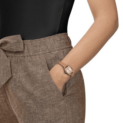 This Tissot watch has a case made of Steel silver with a diameter of 20 mm and is fitted with a leather strap. Inside the case lies a ETA movement and the watch features a Sapphire crystal.