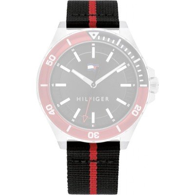 This Tommy Hilfiger watch strap is made of textile and is attached to the watch by means of push pins. The band has a width of 20 mm and is closed by means of a buckle. The strap has a straight mount which means that this strap is suitable for all Tommy Hilfiger watches with a straight mount.