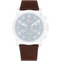 This Tommy Hilfiger watch strap is made of leather and is attached to the watch by means of push pins. The band has a width of 23 mm and is closed by means of a buckle. The strap has a straight mount which means that this strap is suitable for all Tommy Hilfiger watches with a straight mount.