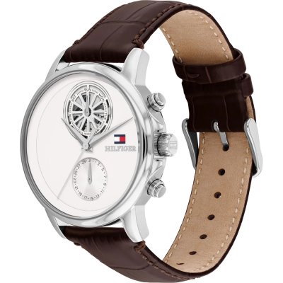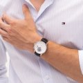This Tommy Hilfiger watch has a case made of Steel silver with a diameter of 40 mm and is fitted with a leather strap. Inside the case lies a Seiko Instruments Inc. movement and the watch features a Mineral crystal.