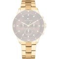 This Tommy Hilfiger watch strap is made of stainless steel and is attached to the watch by means of push pins. The band has a width of 19 mm and is closed by means of a deployment clasp with push buttons. The strap has no straight mount which means that this strap is only suitable for the watches listed below.