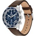 This Tommy Hilfiger watch has a case made of Steel silver with a diameter of 41 mm and is fitted with a leather strap. Inside the case lies a Seiko Instruments Inc. movement and the watch features a Mineral crystal.