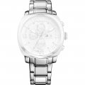 This Tommy Hilfiger watch strap is made of stainless steel and is attached to the watch by means of push pins. The band has a width of 22 mm and is closed by means of a deployment clasp with push buttons. The strap has no straight mount which means that this strap is only suitable for the watches listed below.