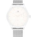 This Tommy Hilfiger watch strap is made of stainless steel and is attached to the watch by means of push pins. The band has a width of 18 mm and is closed by means of a milanese clasp. The strap has a straight mount which means that this strap is suitable for all Tommy Hilfiger watches with a straight mount.