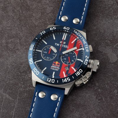 This TW Steel watch has a case made of Steel silver with a diameter of 45 mm and is fitted with a leather strap. Inside the case lies a Seiko Instruments Inc. movement and the watch features a Hardened crystal.