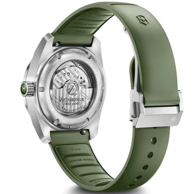 This Victorinox watch has a case made of Steel silver with a diameter of 39 mm and is fitted with a rubber strap. Inside the case lies a La Joux-Perret movement and the watch features a Single anti-reflective sapphire crystal.