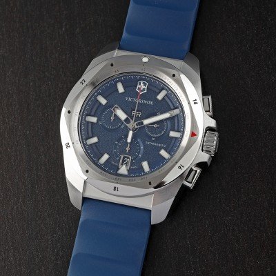 This Victorinox watch has a case made of Steel silver with a diameter of 43 mm and is fitted with a rubber strap. Inside the case lies a Ronda movement and the watch features a Sapphire crystal.