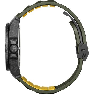 This Victorinox watch has a case made of Carbon with a diameter of 41 mm and is fitted with a rubber strap. Inside the case lies a Sellita movement and the watch features a Sapphire crystal.