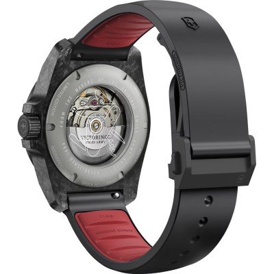 This Victorinox watch has a case made of Carbon with a diameter of 41 mm and is fitted with a rubber strap. Inside the case lies a Sellita movement and the watch features a Sapphire crystal.