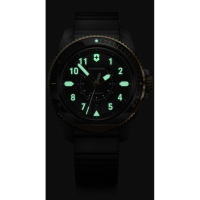 This Victorinox watch has a case made of Steel silver with a diameter of 43 mm and is fitted with a rubber strap. Inside the case lies a Ronda movement and the watch features a Sapphire crystal.