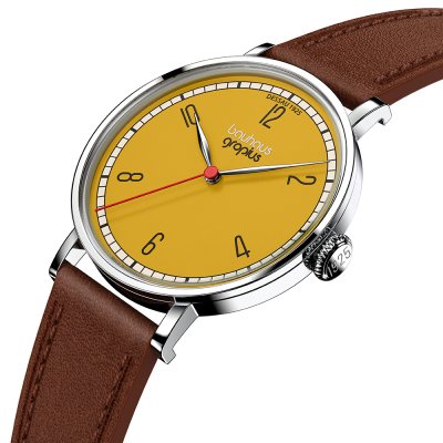 This Walter Gropius watch has a case made of Steel silver with a diameter of 38 mm and is fitted with a leather strap. Inside the case lies a Miyota movement and the watch features a Double anti-reflective sapphire crystal.