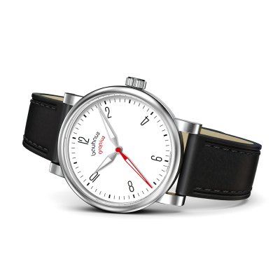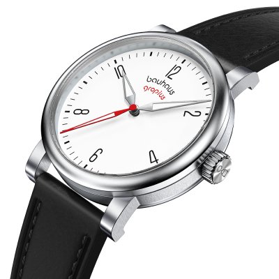 This Walter Gropius watch has a case made of Steel silver with a diameter of 40 mm and is fitted with a leather strap. Inside the case lies a Seiko Instruments Inc. movement and the watch features a Double anti-reflective sapphire crystal.