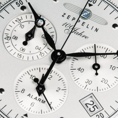 This Zeppelin watch has a case made of Steel silver with a diameter of 42 mm and is fitted with a Steel silver strap. Inside the case lies a Ronda movement and the watch features a K1 Mineral crystal.