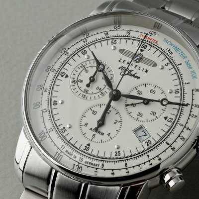 This Zeppelin watch has a case made of Steel silver with a diameter of 42 mm and is fitted with a Steel silver strap. Inside the case lies a Ronda movement and the watch features a K1 Mineral crystal.