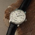 This Zeppelin watch has a case made of Steel silver with a diameter of 40 mm and is fitted with a leather strap. Inside the case lies a Miyota movement and the watch features a K1 Mineral crystal.