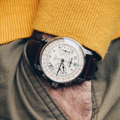 This Zeppelin watch has a case made of Steel silver with a diameter of 42 mm and is fitted with a leather strap. Inside the case lies a Miyota movement and the watch features a K1 Mineral crystal.