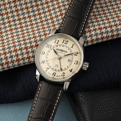 This Zeppelin watch has a case made of Steel silver with a diameter of 42 mm and is fitted with a leather strap. Inside the case lies a Ronda movement and the watch features a K1 Mineral crystal.