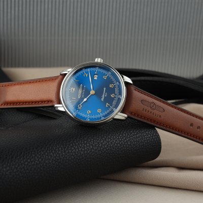 This Zeppelin watch has a case made of Steel silver with a diameter of 40 mm and is fitted with a leather strap. Inside the case lies a ETA movement and the watch features a K1 Mineral crystal.